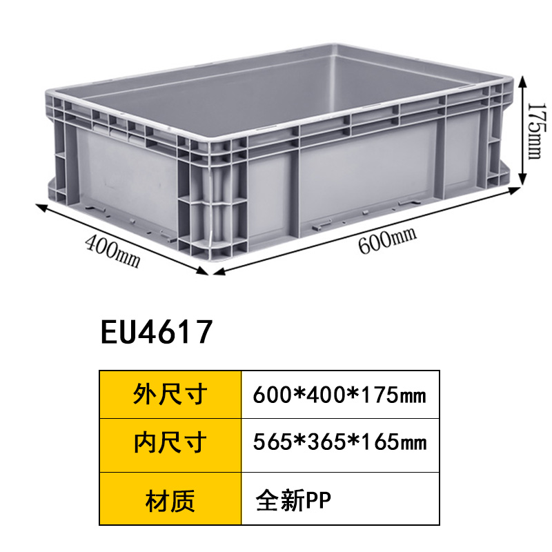 EU物流箱采用全新pp材質(zhì),采用先進(jìn)的生產(chǎn)工藝注塑而成,具有周轉(zhuǎn)方便,碼垛整齊,便于管理的特點(diǎn);規(guī)格多樣,常與塑料托盤及貨架等倉儲(chǔ)設(shè)備配合使用應(yīng)用廣泛, 主要應(yīng)用于物流運(yùn)輸、倉儲(chǔ)管理、生產(chǎn)加工、零部件存儲(chǔ)與運(yùn)輸、廢棄物處理及產(chǎn)品展示等多個(gè)領(lǐng)域