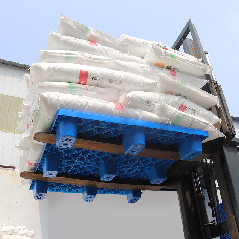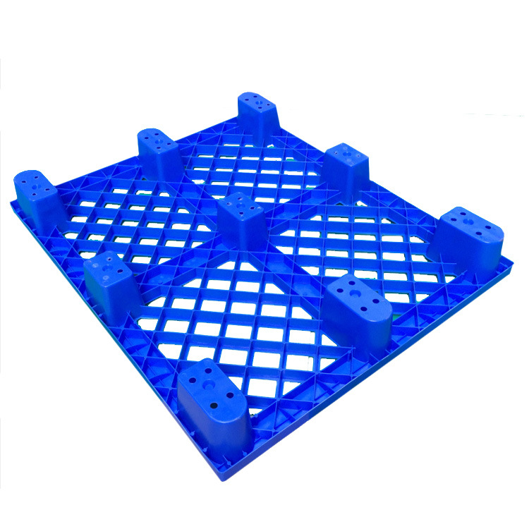 九腳網(wǎng)格塑料托盤的九腳網(wǎng)格托盤其底部是有‘九個腿’組成的,表面為‘網(wǎng)格’狀,行業(yè)為方便稱其為九腳網(wǎng)格托盤,九腳網(wǎng)格托盤大多型號的都為輕型的塑料托盤,不易用于上貨架或者較重貨物的周轉(zhuǎn)使用,大多情況下九腳網(wǎng)格塑料托盤都是用來倉庫貨物墊倉板防潮使用,對于輕型貨物的周轉(zhuǎn)也可