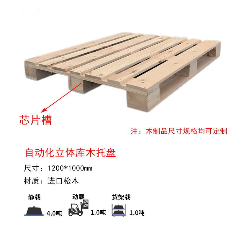 優(yōu)選材料:選用進(jìn)口松木制作,密度560-600kg/立方米,干燥性好,不易變形和開(kāi)裂,耐腐蝕牢固耐用:采用三種不同強(qiáng)度的螺絲釘加固,隱形美觀,牢固性好芯片卡槽:托盤(pán)設(shè)有RFID芯片槽位置,可插電子芯片,高效管理貨物,是智能倉(cāng)儲(chǔ)、物流電商、立體貨架等行業(yè)的得力助手四邊圓角:四角倒圓角設(shè)計(jì),預(yù)防碰撞時(shí)給貨物帶來(lái)?yè)p害,